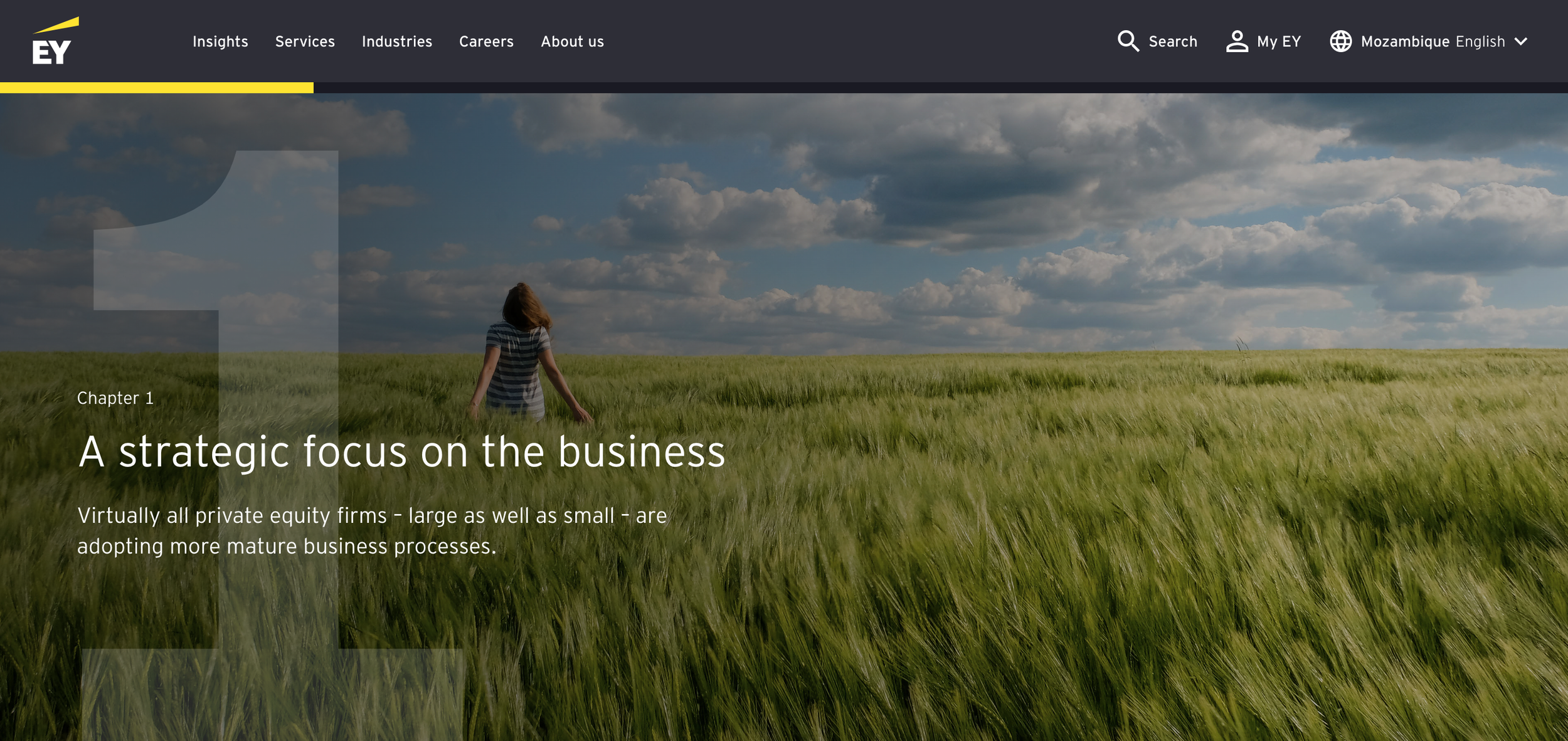 You may decide you want to share your insights in a public, ungated format to maximize reach. The 2022 Global Private Equity Survey by EY does this, displaying their findings as a beautiful, open landing page with infographics and editorial throughout.